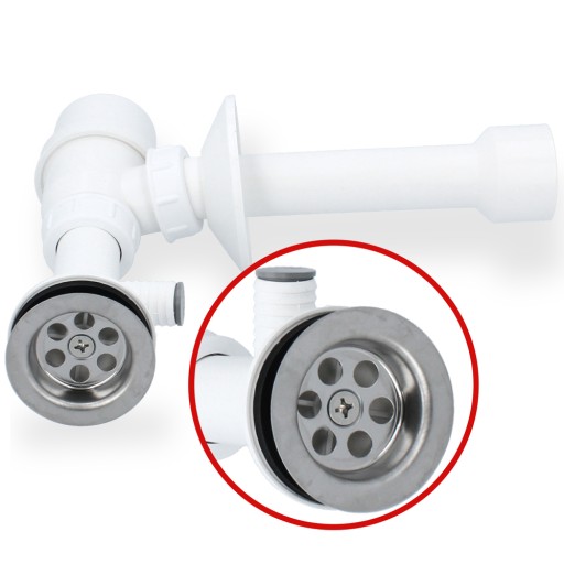 Syfon umywalki 50 mm plastik z wyjściem na pralkę i metalowym sitkiem
