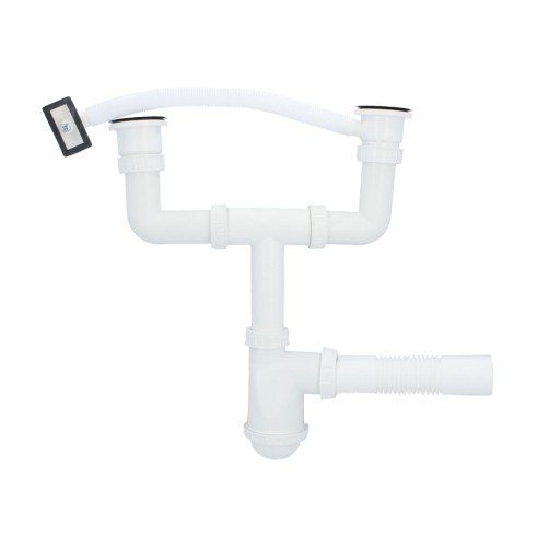 Syfon zlewu dwukomorowego 50 mm plastik z przelewem i metalowym sitkiem