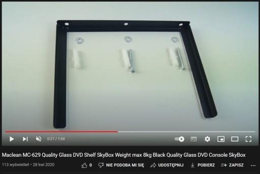 PÓŁKA SZKLANA ŚCIENNA RTV AV do DEKODERA TUNERA DVD KONSOLI Maclean MC-629