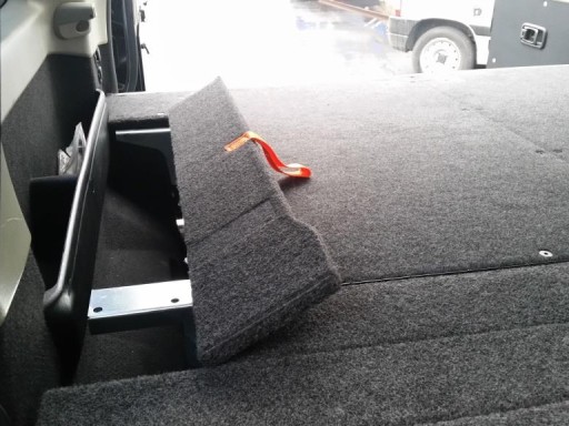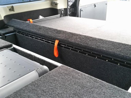 Zabudowa wyposażona w dodatkowe skrzynie w miejscu tylnych siedzeń. Tworzy równą powierzchnię sypialną i pozwala na uzyskanie dodatkowej przestrzeni na rzeczy.