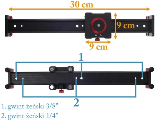 Slider do DSLR i kamer video i smartfon'ów 30 cm z łożyskami