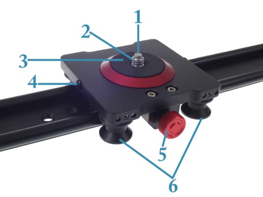Slider zbudowany jest ze stopu aluminium i tworzyw sztucznych. Stanowi to lekką konstrukcję o dużej nośności. Szyna slidera wykonana jest ze stopów aluminium. Posiada otwory 1/4 cala oraz 3/8 cala, pozwalających na zamontowanie slidera na jednym lub dwóch statywach. Na końcach szyny znajdują się podpory z regulowanymi stopkami.