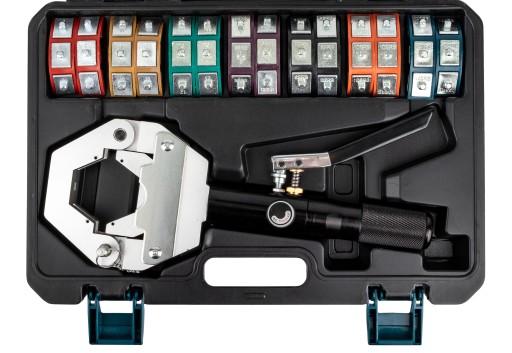 Hydrauliczna zaciskarka do przewodów ciśnieniowych. Zastosowanie do warsztatów samochodowych oraz serwisów klimatyzacji. Umożliwia szybkie i trwałe zaciskanie końcówek na przewodach podczas ich naprawy lub produkcji nowych węży do klimatyzacji.