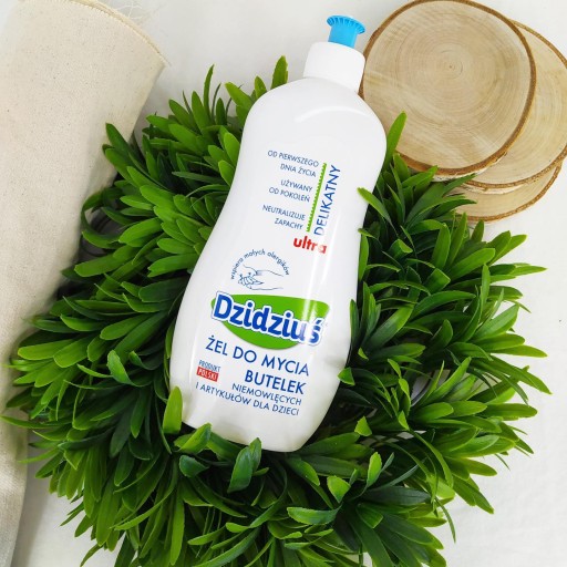 Żel do mycia butelek Dzidziuś pozwala na skuteczne i całkowicie bezpieczne czyszczenie produktów z najbliższego otoczenia dziecka. Polecany jest szczególnie do mycia butelek do karmienia malucha oraz akcesoriów, takich jak smoczki, talerzyki, sztućce czy zabawki.