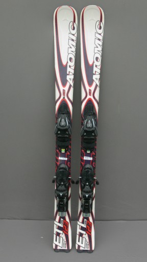 Narty używane ATOMIC ETL dł. 123cm ; taliowanie 112-75-99,5 ; promień skrętu 9,7m ; z wiązaniami ATOMIC EVOX 10 (zakres 3 - 10), na dł. skorupy buta 260 - 384mm.