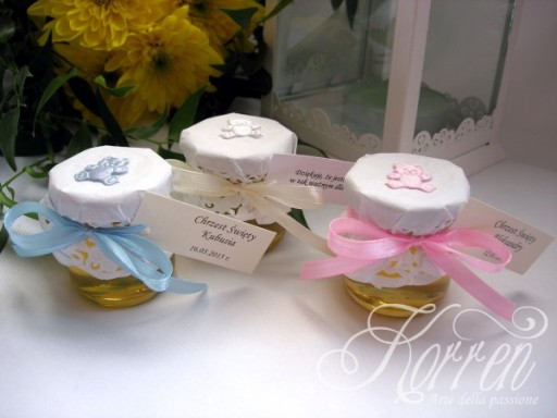 - - bilecik z nadrukiem (2 cm x 5 cm) (wierszyk, imię i data uroczystości lub personalizacja gości)