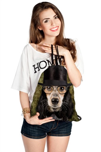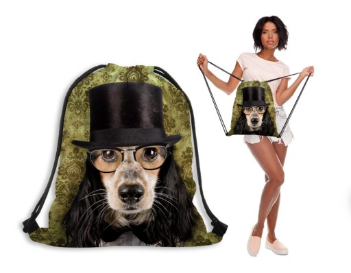 TORBA-WOREK-PLECAK-NADRUKI KOLOROWE-PIES RETRO