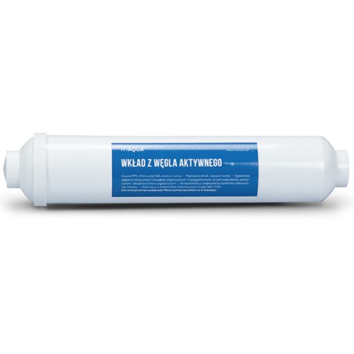 5. Filtr liniowy z węglem aktywnym - filtr z węglem aktywnym składa się z wysokiej jakości granulatu węgla aktywnego, który ma szczególnie grubą porowatą powierzchnię. Ze względu na specjalną zdolność absorpcyjną poszczególnych granulek, filtr z węglem aktywnym usuwa lub redukuje cząstki chloru, zapachy, smaki, fenol, benzen i zanieczyszczenia organiczne z wody wodociągowej. Filtr z węglem aktywnym zapewnia doskonałą poprawę smaku, jak również optyczną estetykę przefiltrowanej wody.