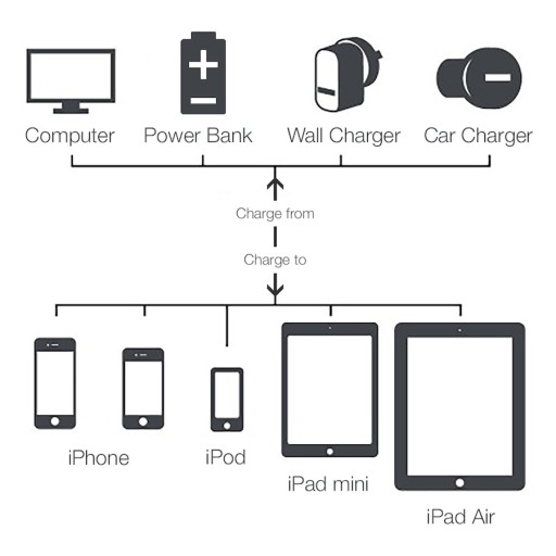 iPad 2/3/4 Retina; iPad Mini, Mini 2, Mini 3, Mini 4; iPad Air, Air 2, Air 3;