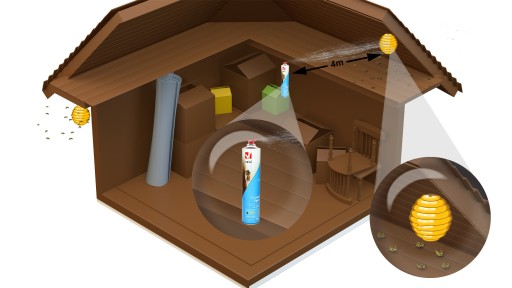 Preparat w aerozolu. Należy go nanosić na powierzchnie, gdzie obserwuje się aktywność owadów. Środek można stosować zarówno na zewnątrz jak i wewnątrz budynków.