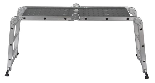 Aluminiowa drabina przegubowa 4x3 HandyMaster, w zestawie z podestem, to najwyższa jakość i uniwersalność użytkowania. Możliwość ustawienia aż w 7 kombinacjach pozwala wykorzystać tę niezastąpioną drabinę do wielu różnych prac. Niekwestionowanym atutem są kompaktowe wymiary po złożeniu, bezproblemowy transport i przechowywanie.