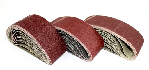 Pasy bezkońcowe / taśmy szlifierskie / lenty ze ścierniwem z węglika krzemu wiązanym żywicą syntetyczną na podkładzie włókien bawełny, wyróżniają się dobrą wytrzymałość na zrywanie i rozciąganie oraz wysoką wydajnością szlifowania zgrubnego i wykańczającego drewna, metali nieżelaznych i tworzyw sztucznych.