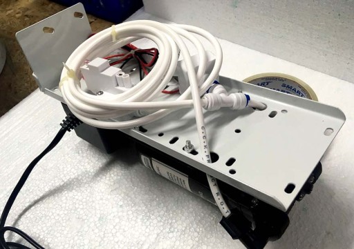 Profil stelaża montażowego pozwala na przymocowanie pompy do filtra odwróconej osmozy.