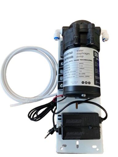 Kompletna pompa elektryczna do filtrów odwróconej osmozy. Poprawia sprawność działania membrany osmotycznej, poprzez zwiększenie ciśnienia. Pompa ROPOMP poprzez podniesienie ciśnienia wpływa korzystnie na ilość wody odprowadzanej do kanalizacji oraz na czas napełnienia zbiornika.