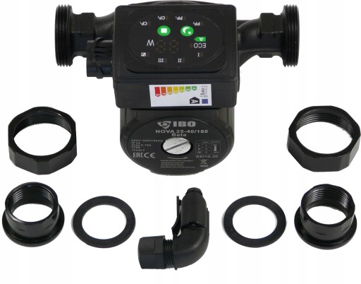 Pompa obiegowa serii NOVA jest wyposażona w silnik z magnesami trwałymi i regulator różnicy ciśnień, które automatycznie i stale dostosowują wydajność pompy w celu zaspokojenia rzeczywistych potrzeb systemu. Panel sterowania pompą został umieszczony na szczycie silnika, co ułatwia obsługę przez użytkownika. na jego tarczy wyświetlany jest bieżący pobór energii elektrycznej. W komplecie z pompą znajduję się komplet śrubunków wraz z adapterem do podłączenia przewodu.