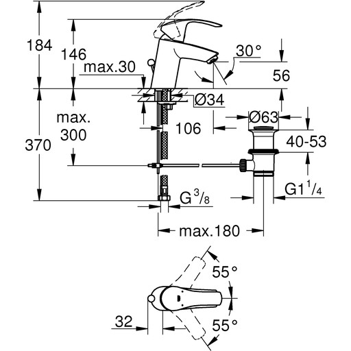 GROHE EUROSMART Смеситель для умывальника + душевой набор
