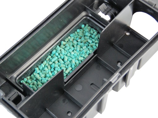 Karmnik jest dwukomorowy co w połączeniu z drucikami do trutki i tacką do granulatu powoduje że trutka jest zawsze na swoim miejscu!