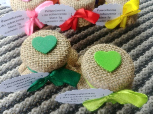 - materiał jutowy-dostępne kolory serduszek widoczne na zdjęciach(więcej wzorów z jutą na innych aukcjach).