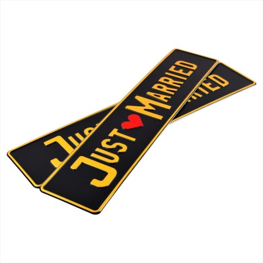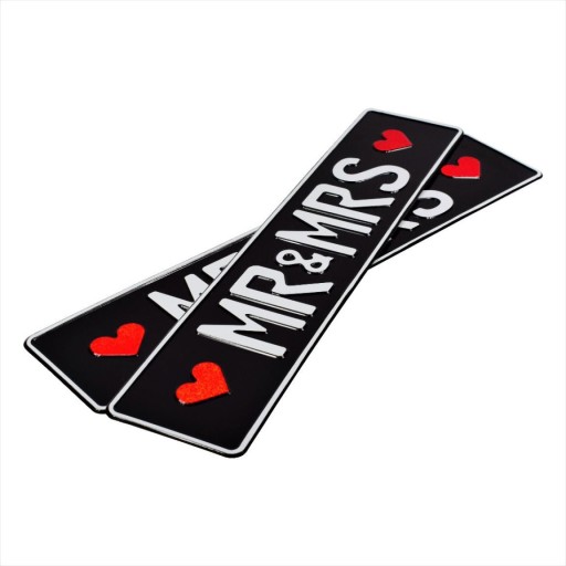 Ponadto, by jeszcze bardziej podkreślić uczucie, które Was łączy, każdą z tablic ozdobiliśmy dekoracją w postaci brokatowych, czerwonych, serc. Oczywiście, nasze tablice ślubne "MR&MRS" pasują do standardowych ramek samochodowych.