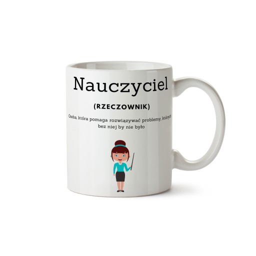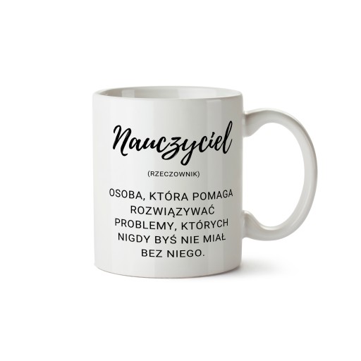 Na tej aukcji kupujesz kubek z gotowym wzorem dla nauczyciela.