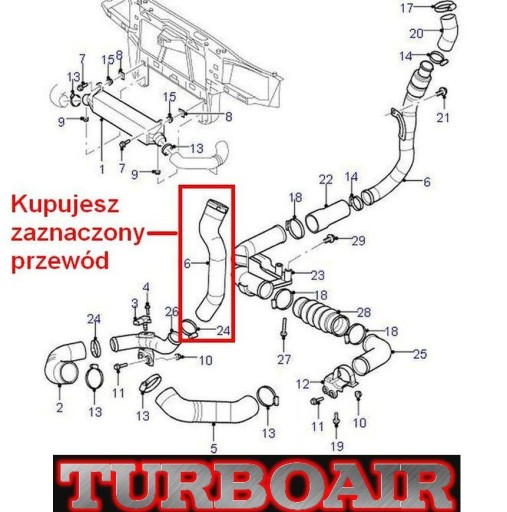 Przewód gumowy intercoolera, rura turbo, przewód powietrza intercoolera.