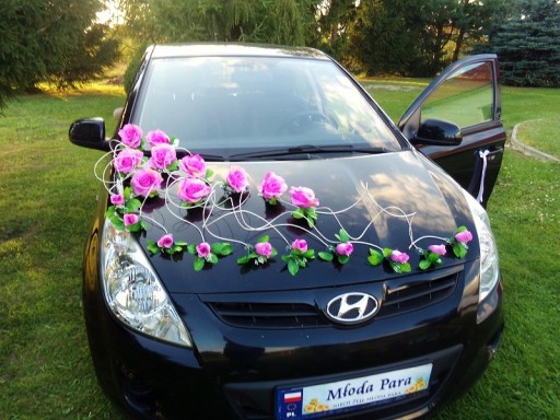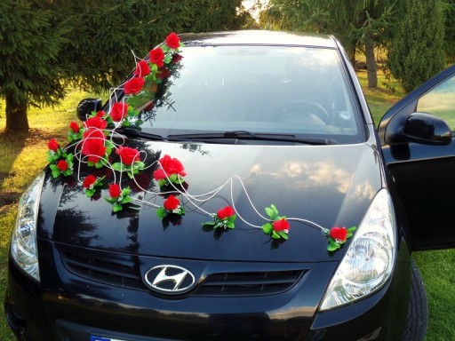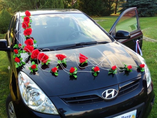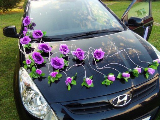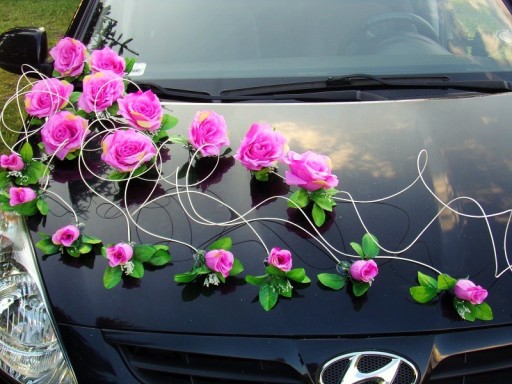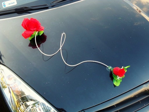 Oryginalna dekoracja na samochód weselny.