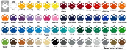 - Kolor: dowolnie wybrany (wzornik 60 kolorów na dole aukcji)