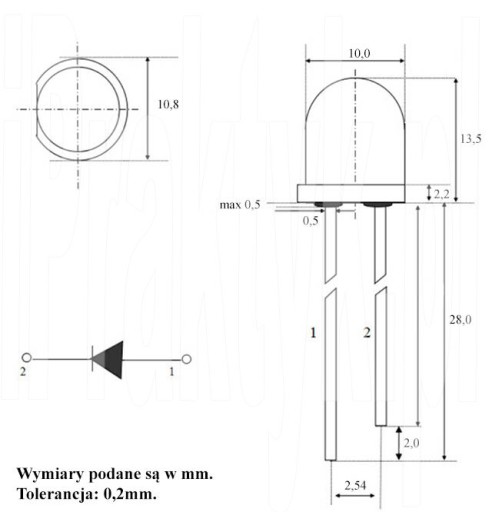 Przedmiotem aukcji jest silna dioda żółta 10mm (przy niższym napięciu daje kolor pomarańczowy!).