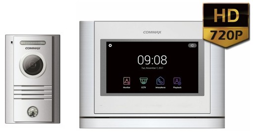 Wideodomofon kolorowy HD firmy Commax, Monitor wyświetla obraz jakości HD 720p zarówno z paneli wejściowych (np. DRC-40KHD) jak i z kamer obserwacyjnych AHD 1,3Mpx. Dotykowy ekran monitora pozwala szybko i skutecznie nawiązać komunikację z panelem, otworzyć wejście, czy zapisać obraz w pamięci urządzenia. Kamera kolorowa marki Commax 1 Mpx HD z regulowanym kątem patrzenia obiektywu. Przeznaczona do montażu natynkowego, jeden przycisk wywołania, doświetlenie diodami światła białego.