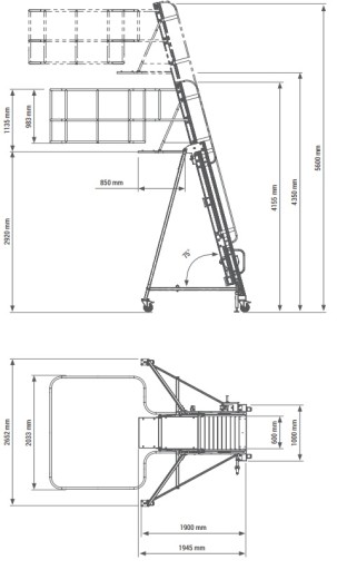 - Gabaryty - podest rozsunięty: 3,95 x 2,65 x 5,60 m