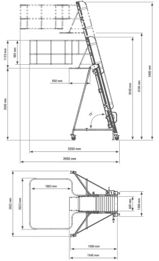 - Gabaryty - podest zsunięty: 3,95 x 2,65 x 3,55 m