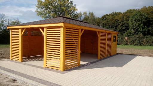 Altana ogrodowa czy domek letniskowy? A co powiesz na piękną, drewnianą konstrukcję 2 w 1, czyli altankę połączoną z domkiem narzędziowym? Niezwykle funkcjonalna i praktyczna struktura tego wytworu z drewna sosnowego sprawi, że nie pożałujesz jej zakupu! Łączne jej wymiary to 7 x 4 m, z czego altana stanowi 4 x 5,5 m, a domek 4 x 1,5 m.