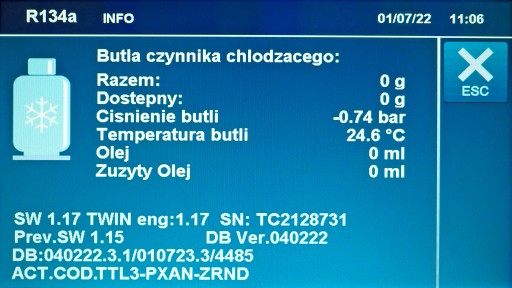 - Podgrzewany zbiornik z czynnikiem chłodniczym: TAK