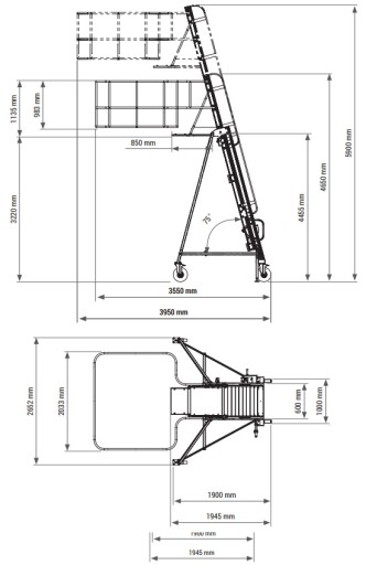 - Gabaryty - podest zsunięty: 4,65 x 2,65 x 3,55 m
