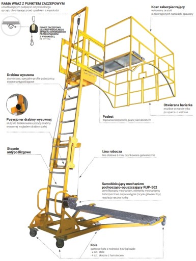- Gabaryty - podest rozsunięty: 3,74 x 2,61 x 5,65 m