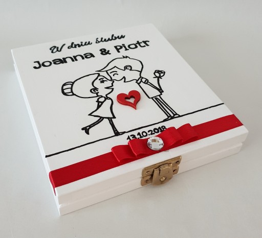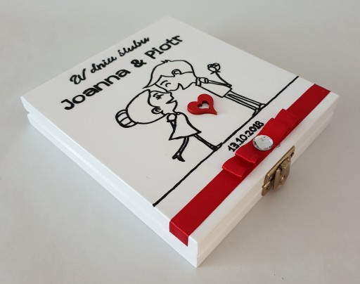 - Drewniany box ślubny zamykany na zatrzask.