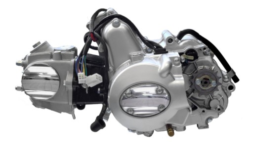 Wysokiej jakości Kompletny silnik 4T o pojemności 50cm³, z manualną skrzynią, czterobiegowy. Identyczny jak oryginalna 50-siątka montowanej w motorowerach. Rozruch elektryczny lub nożny. Zalany olejem 10W40, przygotowany do montażu. Bogaty zestaw akcesorii dodatkowych !