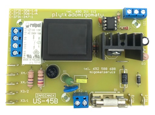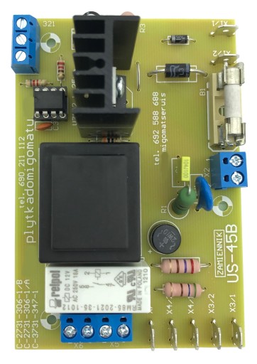 Przedmiotem sprzedaży jest płytka z elektroniką do migomatów BESTER MiniMAG 1500 MidiMag Midimagster 1800 1801 1803 Turbo i podobnych posiadających płytę z oznaczeniem US-45, US-45A, US-45B, US-45C itp