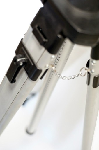 Łancuszki między nogami statywu zapewniają dodatkową stabilność i pewność, że nogi statywu nie rozsuną się.