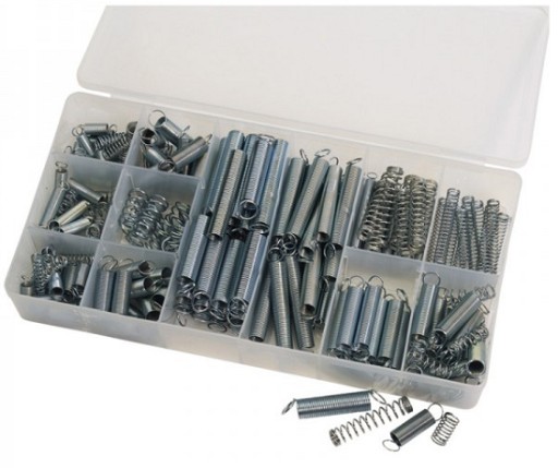 Komplet 200 sztuk sprężyn ściskanych i rozciąganych. Różne rozmiary posegregowane w wygodnej skrzynce