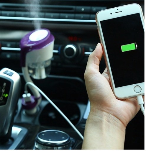 - Odświeżacz powietrza w kolorze biało-fioletowym z dwoma gniazdami USB