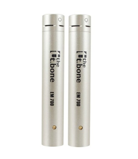 Mikrofony kondensatorowe the t.bone EM 700 Stereo Set typu "overhead". Doskonale sprawdza się w różnorodnych zastosowaniach, takich jak nagrywanie dźwięku cymbałów, instrumentów perkusyjnych, talerzy, a także instrumentów akustycznych, takich jak gitary, skrzypce czy pianina, jak również instrumentów dętych. Doskonale nadają się do wykorzystania podczas nagłaśniania i nagrywania przez różnorodne chóry.