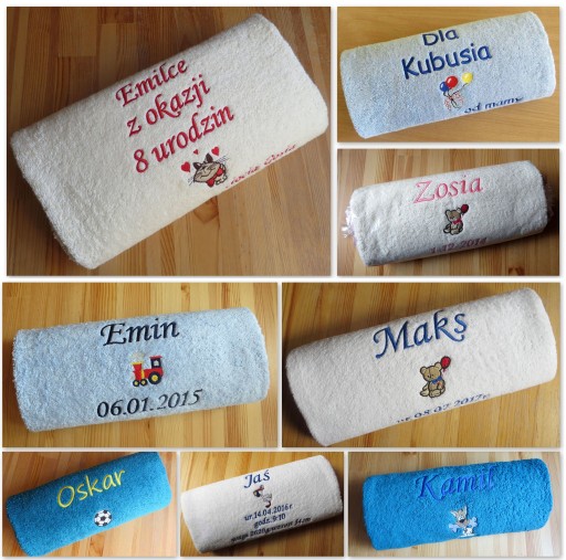 Na naszych innych aukcjach znajdziesz ręczniki w rozmiarze 50x100 cm, poduszki i śliniaki z haftem!