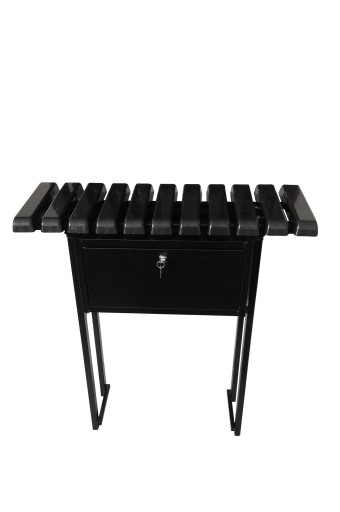 Siedzisko ławeczki wykonane jest z kostki PVC z dodatkiem granulatu UV aby nie blakło na słońcu.