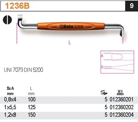 WKRĘTAK PŁASKI KĄTOWY DWUSTRONNY, MODEL 1236B, 1X5,5MM - WŁOSKIEJ FIRMY BETA