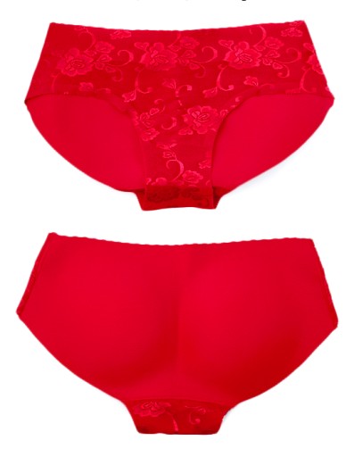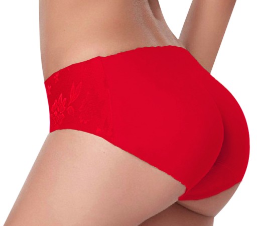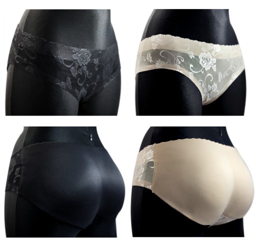 Wykonane z obciskającego materiału, w dotyku przypominającego naturalne ciało. Zupełnie niewidoczne pod ubraniem. Majteczki wypełnione są na stałe mięciutkimi wkładkami z pianki o grubości 2-3 c, które są wtopione w materiał, czyli nie ma możliwości na przesuwanie się, dzięki czemu będziesz czuć się pewnie i cieszyć się pięknym wyglądem swoich powiększonych i jędrnych pośladków.