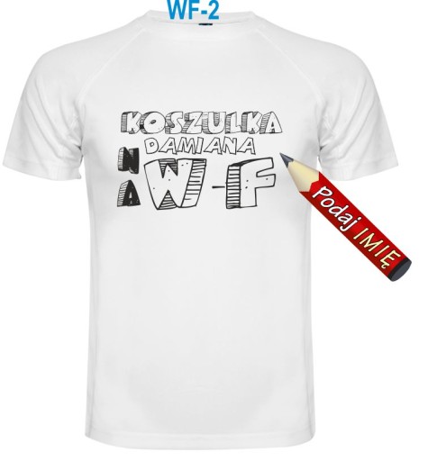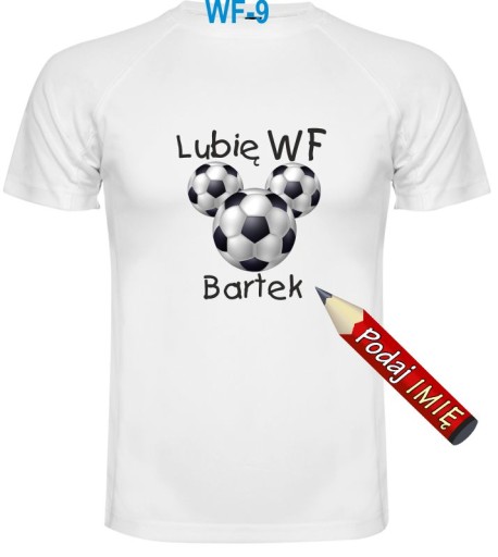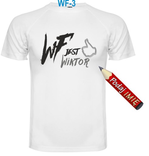 Koszulka wykonana ze specjalnie oddychającej tkaniny idealnej do wszelkiej aktywności fizycznej i zabaw dla dziecka z imieniem i nadrukiem związanym z W-F.