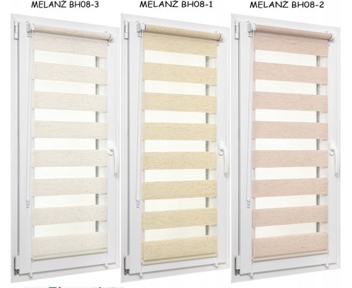 - Roleta wykonana została z wysokiej jakości materiałów o różnej przepuszczalności światła - naprzemiennie utkanej tkaniny (77 mm) oraz przezroczystej siatki (50 mm).