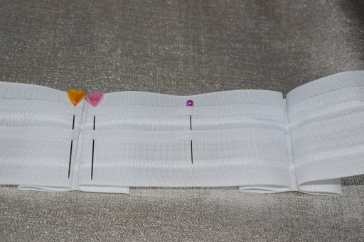 - sposób zawieszania- na żabki lub za haczyki/agrafki. Taśma od tyłu posiada tuneliki przez które istnieje możliwość upięcia za haczyki czy agrafki
