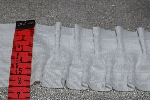 - SMOK BAWEŁNA 6cm----marszczenie 1:2 a nawet 1:3, możliwość swobodnej regulacji, wszystko zależy od stopnia ściągnięcia sznureczków na taśmie.